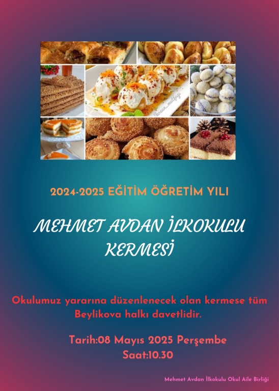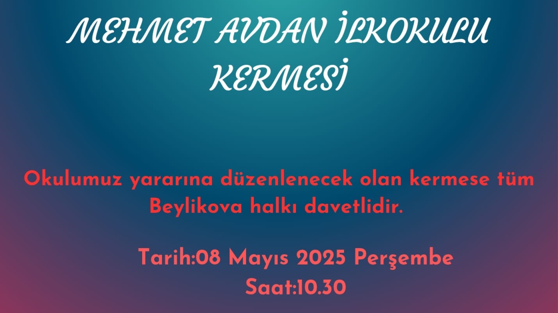 2024-2025 Eğitim Öğretim Yılı Mehmet Avdan İlkokulu Kermesimize tüm Beylikova halkı davetlidir.